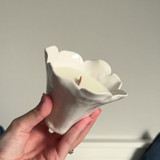 Meet Lotus, the delicate centerpiece of our exclusive candle collection, handcrafted in collaboration with an Italian ceramic artist. Shaped like a blooming flower, this unique piece embodies elegance, calm, and mindful beauty.